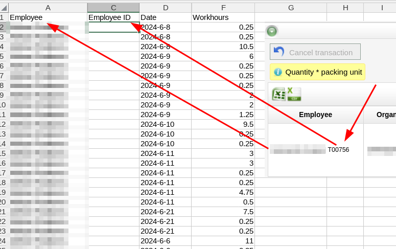 - Ensure that work hours report have same values for connection with IVM report Employee name or ID ( look picture