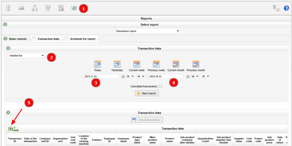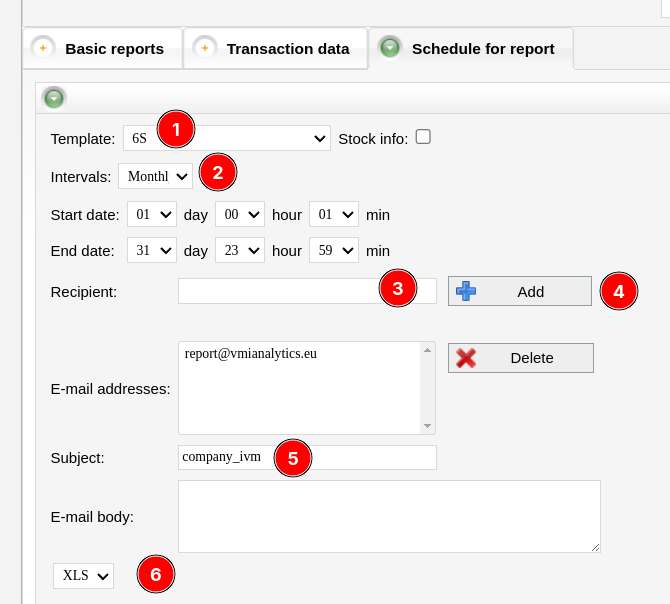 Go to Basic Reports and export Detailed list to XLSX file type. Save report to your computer and send at report@vmianalytics.eu with Subject Company Name Onboarding.